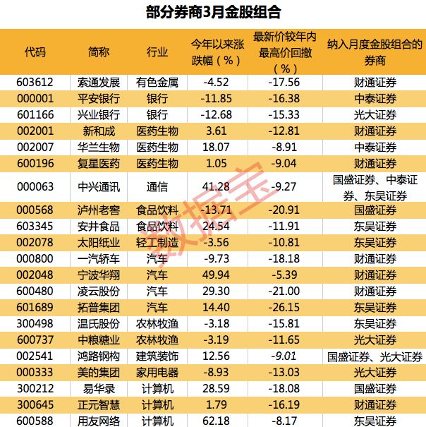 数据宝统计了当前已发布了3月金股组合的5家券商的金股推荐,其中,化工、电子和传媒行业获推荐个股数量最多。