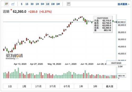 7月9日,优衣库母公司日本迅销集团发布财报称,受全球新冠疫情影响,截至5月底的第三财季净亏损98.2亿日元,旗下日本优衣库业务第三财季营业利润暴跌74%,营收下降36%。利润巨亏消息对迅销股价影响似乎并不大,截至7月9日收盘,讯销涨0.37%, 报62,360日元每股。自今年3月19日触底以来,迅销股价已大涨53%。