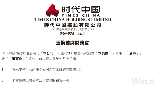 时代中国更换首席财务官的公告