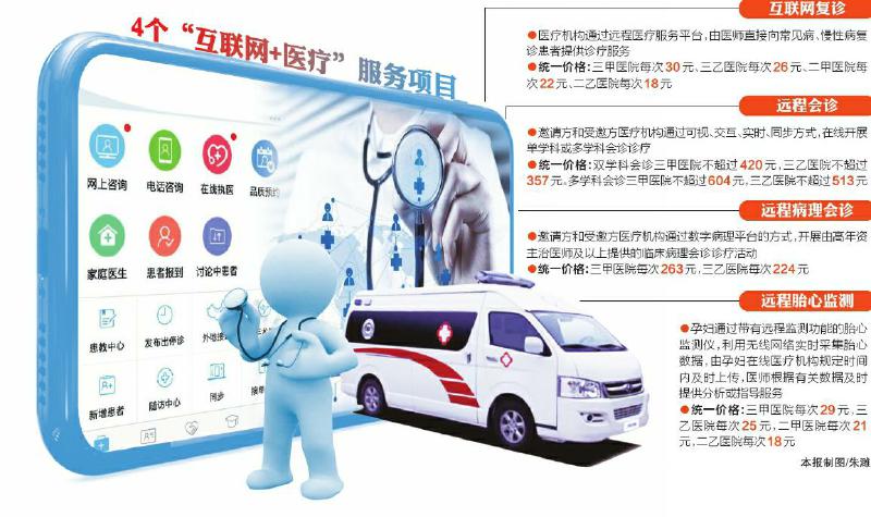我省是全国先期几个将“互联网+医疗”纳入医保的省份之一,首批4项纳入医保的“互联网+医疗”服务项目包括互联网复诊、远程会诊、远程病理会诊、远程胎心监测,项目内费用实现全报销。