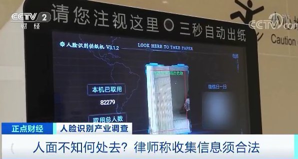 记者在上海一家商场的卫生间看到一台人脸识别供纸机,顾客只需要注视摄像头,机器就会自动出纸,并且短时间内无法重复取纸。该台机器显示已经有超过八万人次取用过纸巾。此外,随着生活中的人脸识别应用越来越多,部分上海市民向记者表达了担忧。