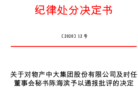 因此,上交所对物产中大的董秘进行了通报批评。