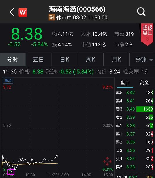 受此消息影响,博瑞医药开盘下跌近20%,截止午间收盘,博瑞医药下跌17.11%,报收51.7元。一同受罚的海南海药早盘一度跌超9%,截止收盘,海南海药跌幅收窄至5.84%,报收8.38元。