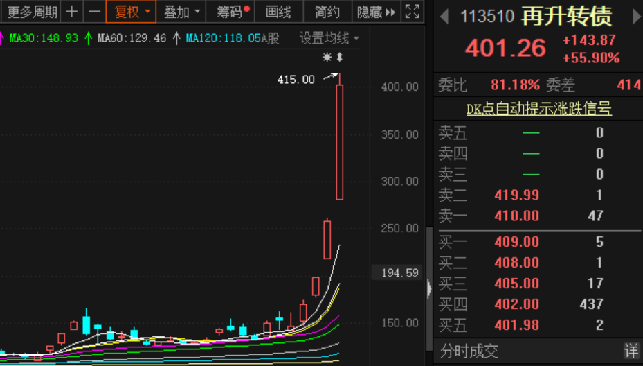 同样的道理,没有办法买到再生科技的投资者转道去买可转债,可转债的涨幅同样远远高于正股。
