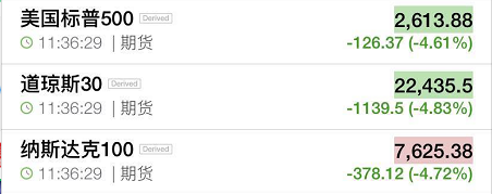 美股股指期货在特朗普讲话的同时继续下行,截至发稿,多个美股股指期货品种跌幅超过4%。
