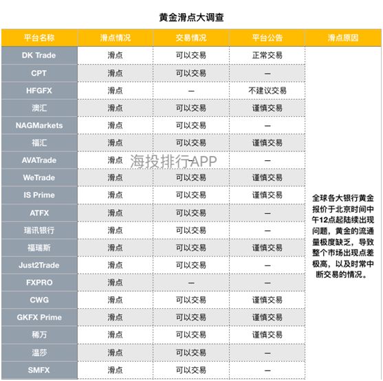 投资者在投资黄金的时候通常会设置自动平仓线,而在流动性低、市场剧烈波动的情况下,黄金的平仓订单通常不以最初指定的价格执行,因而出现滑点。