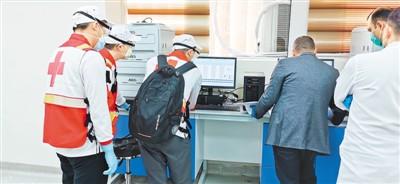 3月18日,由达安基因参与的中国援助伊拉克专家组,正在伊拉克巴格达帮当地医护人员调试核酸检测实验室设备。