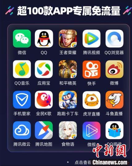 联通腾讯王卡宣传超100款APP专属免流量。中新网记者胡亦心 截图
