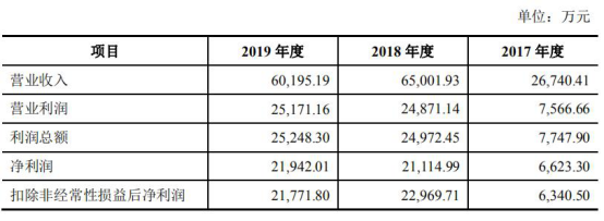 招股书显示,2016年至2019年,新亚强的营业收入分别为1.92亿元、2.67亿元、6.50亿元、6.02亿元,净利润分别为3546.69万元、6623.30万元、2.11亿元、2.19亿元。