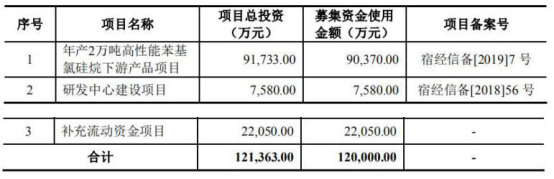 新亚强此次拟募集资金12亿元,其中9.04亿元用于年产2万吨高性能苯基氯硅烷下游产品项目,7580万元用于研发中心建设项目,2.21亿元用于补充流动资金。