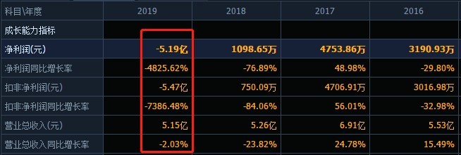 2019年亏损5.19亿,同比下滑4825.62%