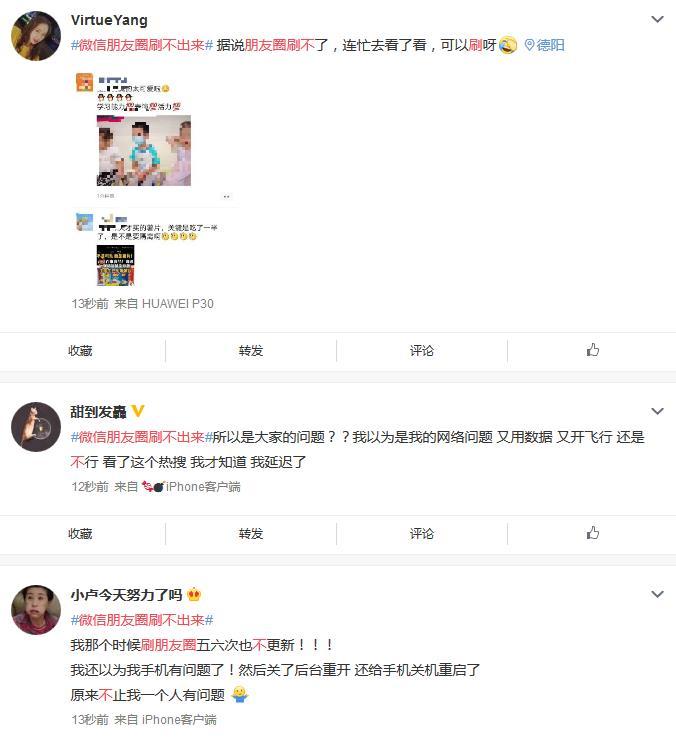 不过,也有网友表示,微信朋友圈可以正常刷新。
