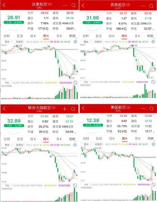 今年以来,美国航空下跌56%,达美航空跌53%,西南航空跌40%,美国联合航空跌62%。