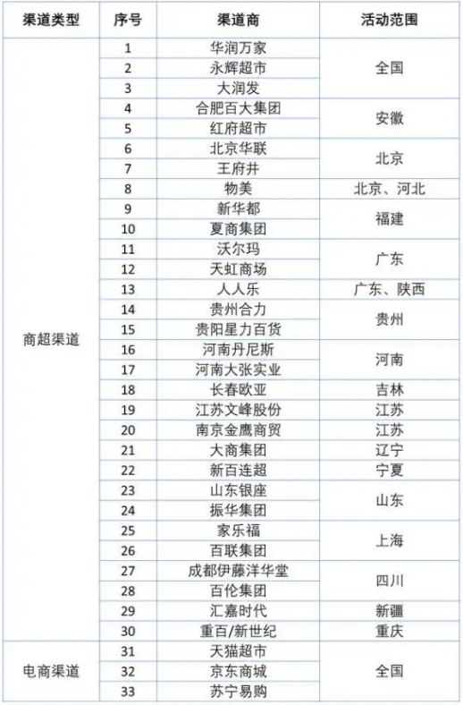 (33家渠道商名单 来源:网络)