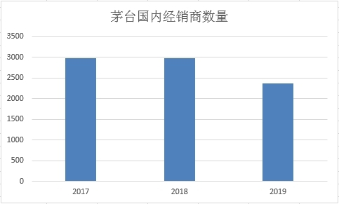 2019年其国内经销商数量为2987家,2019年减少到2377家。剔除增加的经销商,期内净减少610家,再剔除减少的503家系列酒经销商,茅台酒经销商减少数量也在100家左右。