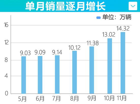 1-11月累计销量达到655,783辆,同比增长13.64%,并且超过去年全年639,953辆的成绩