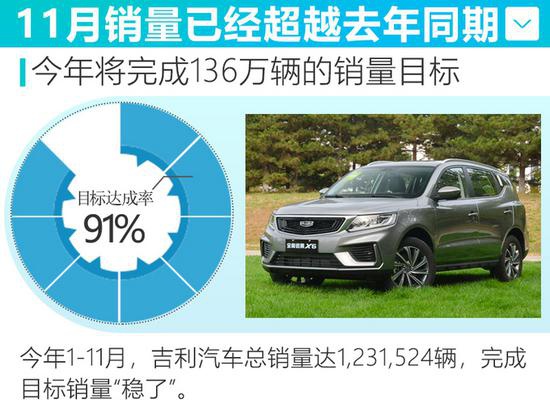 吉利博越、缤越、帝豪、帝豪GS、远景X6、远景X3共6款车型销量过万,