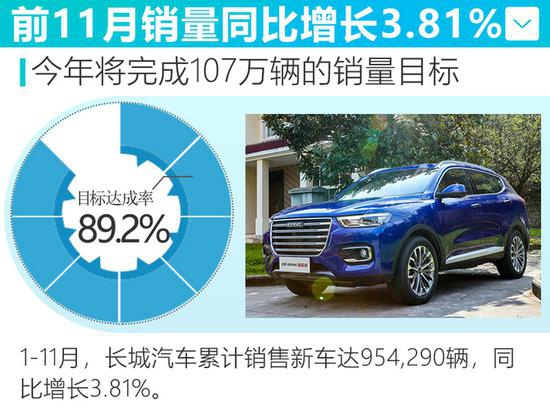 长城汽车前11个月累计销量达954,290辆,同比增长3.81%,完成107万台的目标已经是稳了