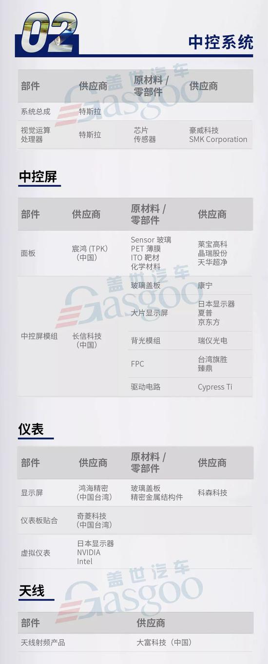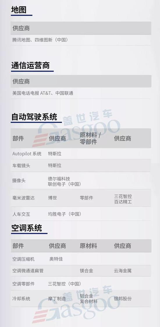 今天将带领大家看看目前特斯拉的供应链情况,以下是盖世汽车收集整理的特斯拉model 3部分供应商信息,与大家共享,同时欢迎更多行业朋友进行信息补充更正并参与文末model 3的降价调研!