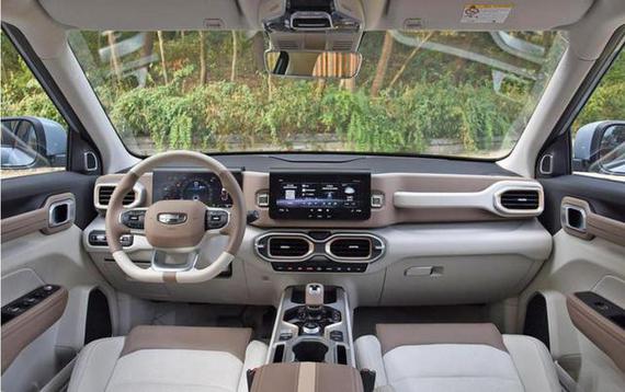 进入车内,新车同样汲取了CONCEPT ICON概念车的设计风格,整体采用了撞色设计,颇具时尚气息,同时,该车还在空调出风口、挡把区域、车门两侧门把手等处加入大量“时间符号”设计元素,从而与官方宣传的科幻感以及未来感做到很好的点题。此外,采用了10.25英寸全液晶仪表以及10.25英寸悬浮式中控屏(搭载最新一代GKUI 19智能车机系统),进一步提升其科技感。