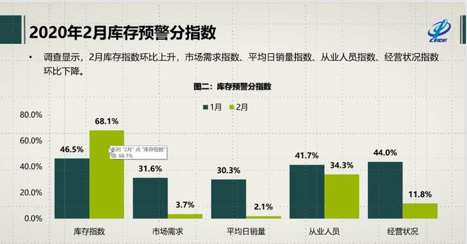 2月汽车经销商库存预警指数大幅提升,主要还是受到疫情影响,据中国汽车流通协会副秘书长郎学红分析,疫情导致企业延迟复工,且消费者暂缓进店,出行亦受到限制,不仅新车购买减少,消费者到店维修保养也大幅度降低。