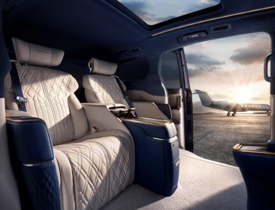 六座车型第二排座椅采用全包覆式设计,侧围在木纹与金属装饰的烘托下突出雕塑美感;扶手宽度增加近30%,让坐姿更舒适。座椅增加了前后滑动电动解锁功能,并提供电动调节椅背、腰托、腿托以及加热、通风、按摩功能,配备侧翼六向可调航空头枕、手机放置槽、弹出式双杯托和USB充电口,为乘员带来媲美头等舱的尊享体验。此外,两个座椅间还留有170mm的宽绰中间通道,方便第三排乘客进出。第三排同样配备两个独立贵宾座椅,座椅可前后调节160mm,椅背倾斜角度调节最大146度,接近半躺姿态;带6档可调独立扶手和加热/通风功能,还原第二排尊贵体验。值得一提的是,全车座椅包覆都甄选进口全粒面上等牛皮,经38道制皮工艺成型,并饰以精细的菱格纹理,结合人体工程学开发和专利技术,不仅华贵气质油然而生,在乘坐舒适性上也实现了自我超越。此外,车内还为第二排宾客准备了豪华翻折小桌板、后排230V电源,并为每位乘员都配备了USB充电接口,贴心满足高端商务与休闲需求。