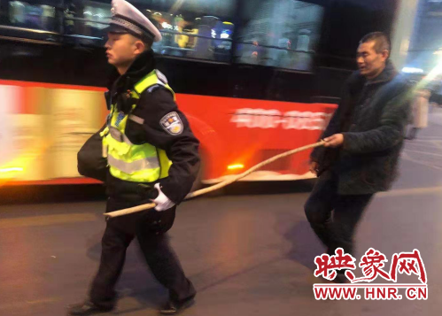 辅警赵隆鑫说:“别着急,我是火车站的交警,我们领着你去坐公交。”一边帮着盲人提着货物,一边引导老人找到138路公交站牌,并将该老人和其随身携带包裹送到车上,辅警赵隆鑫还叮嘱公交车司机:老人视力障碍,到中原第一城后,提醒该老人下车。