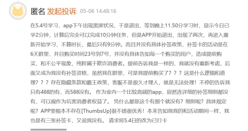 据黑猫平台显示,关于流利说的用户投诉一共1074条,已回复的有887条,其中不少用户投诉内容以课程产品体验有关。