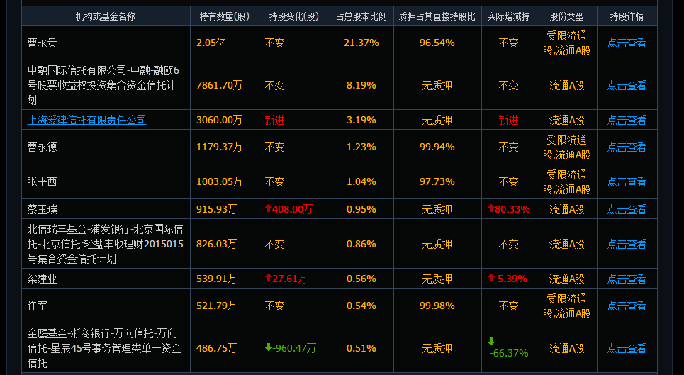 股东信息显示,目前在*ST金贵十大股东行列,包括中融信托、爱建信托、万向信托赫然在列,分别排在第二位、第三位和第十位。其中,中融信托通过融颐6号信托计划持股达8.19%,爱建、万向信托持股均为超过5%,分别为3.19%、0.51%。