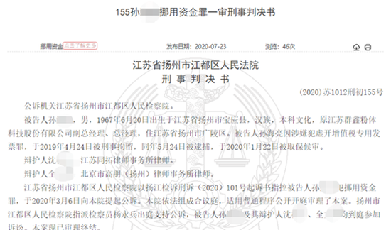 近日,裁判文书网公布了一则显示,新三板挂牌企业群鑫科技原总经理孙某某挪用公司货款用于炒股而获刑。