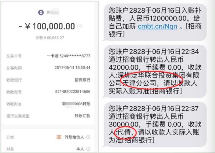 冯女士提供的银行流水显示,2017年6月16日放款120万元后,当日被泛华金融扣掉“砍头息”72000元,剩余112.8万元,又被泛华金融郭某收取手续服务费10万元,冯女士实际借款102.8万元。