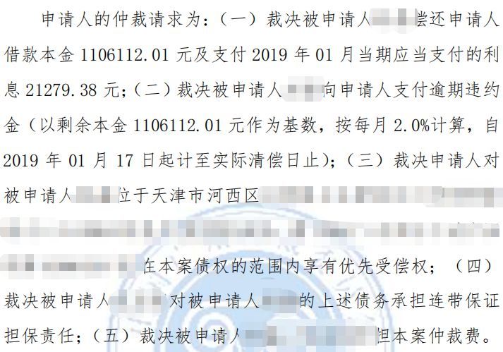 更为蹊跷的是,广州仲裁委员会的裁决书显示,冯女士向申请人外贸信托偿还借款本金1106112.01元及支付2019年1月当期应当支付的利息21279.38元;冯女士向申请人外贸信托支付逾期违约金(违约金以1106112.01元为基数,按月利率2.0%的标准,自2019年1月17日起计至实际清偿之日止);外贸信托对被申请人冯女士的房产在本案债权的范围内享有优先受偿权等。广州仲裁委员会支持了外贸信托的仲裁请求。