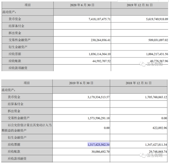 然而,截止2020年上半年末,古井贡酒的应收票据高达10.36亿元,与2019年底10.04亿元相比,不仅没有减少,还在增长之中。与2019年上半年末13.17亿元相比,也仅仅下滑21%左右。