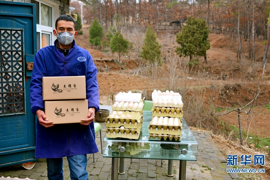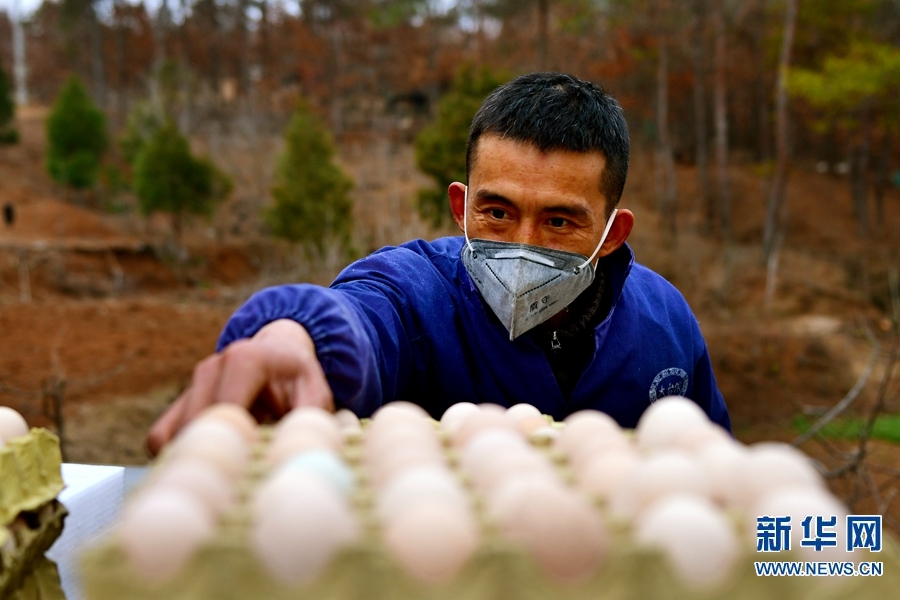 据介绍,樊中阳共承包山地600亩,散养芦花鸡2万只。近日,他在积极应对疫情的同时,积极向市场供应优质鸡蛋,丰富市民的餐桌。新华网发(陈辉 摄)